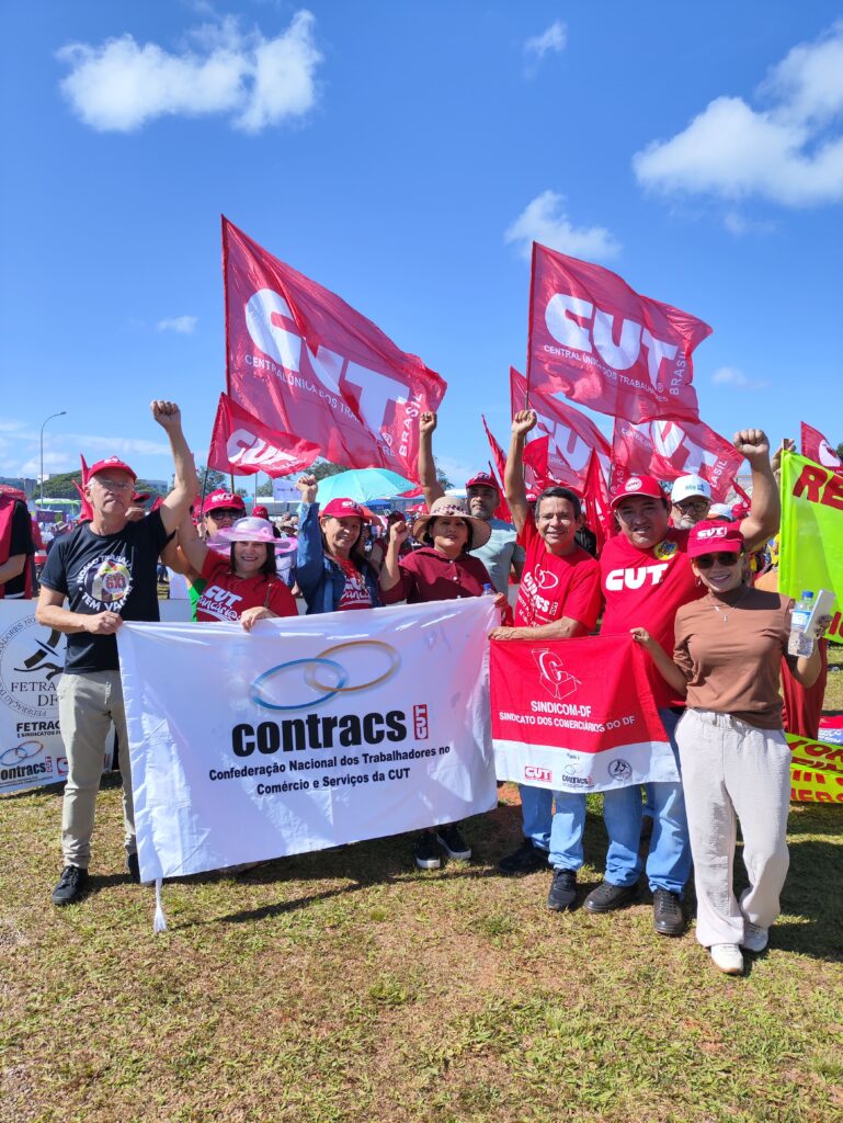 A presença da categoria reforçou o peso da luta contra a escala 6×1, uma realidade que impacta diretamente a saúde, o convívio familiar e a qualidade de vida de milhares de profissionais do comércio. Ao lado de outras categorias, os comerciários também marcharam contra a pejotização, pelo enfrentamento ao feminicídio e em defesa do fortalecimento das negociações coletivas.